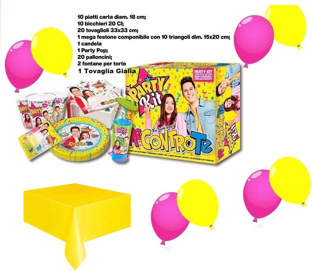 orkidea Kit Party Me Contro Te Festa Compleanno: 10 Piatti + 10 Bicchieri + 20 tovaglioli + 1 Mega Festone + 1 Candela + 1 Party Pop: Amazon.it: Casa e cucina