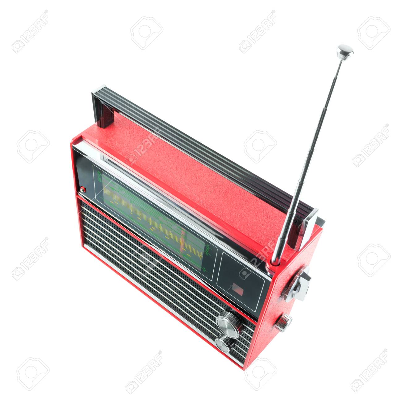 View From Top And Side Of Old Red Transistor Portable Radio Receiver.. Stock Photo, Picture And Royalty Free Image. Image 104648991.